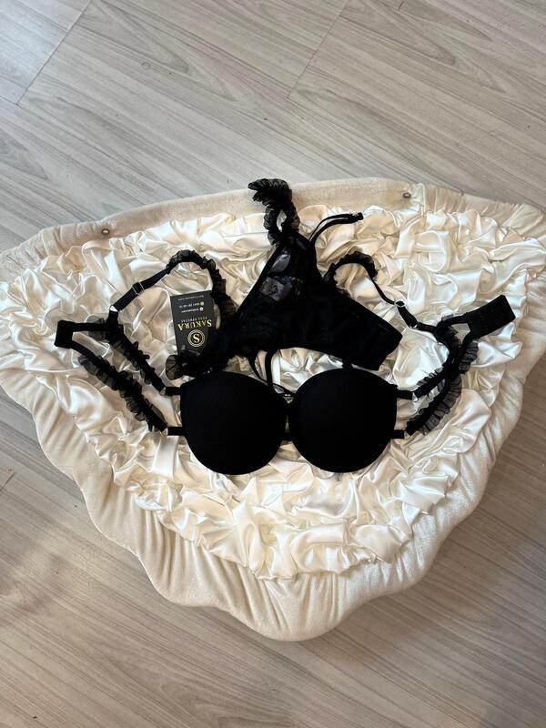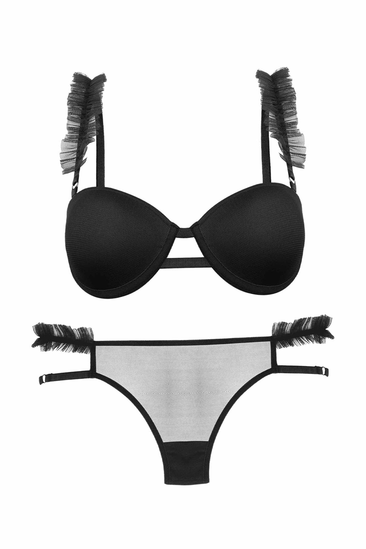 FIRFIRLI SİYAH DESTEKLİ SÜTYEN TAKIM
