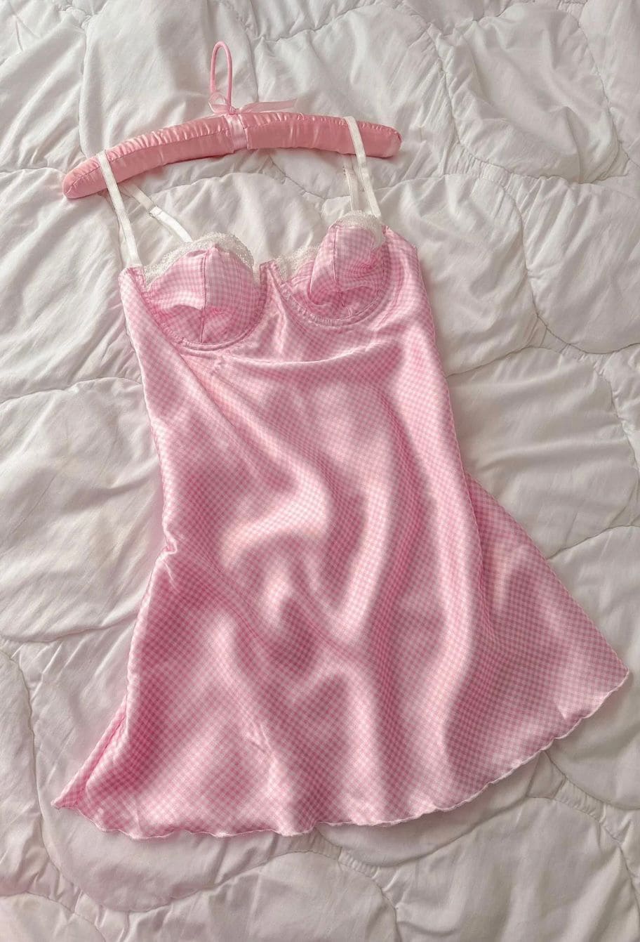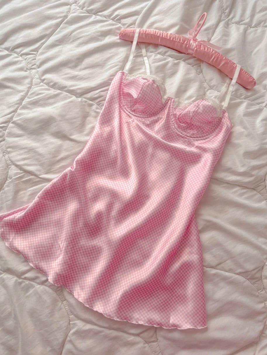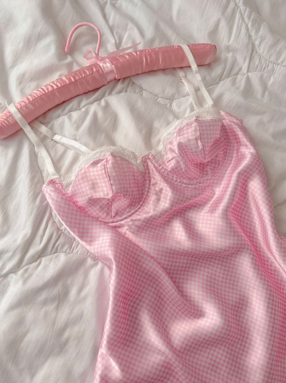 Göğüs dantel detaylı, balenli yapısıyla destekleyici, pötikare desenleriyle göz alıcı bir şıklık sunan bu saten geceliği, kendinizi özel ve zarif hissetmek istediğiniz her an tercih edebilirsiniz.