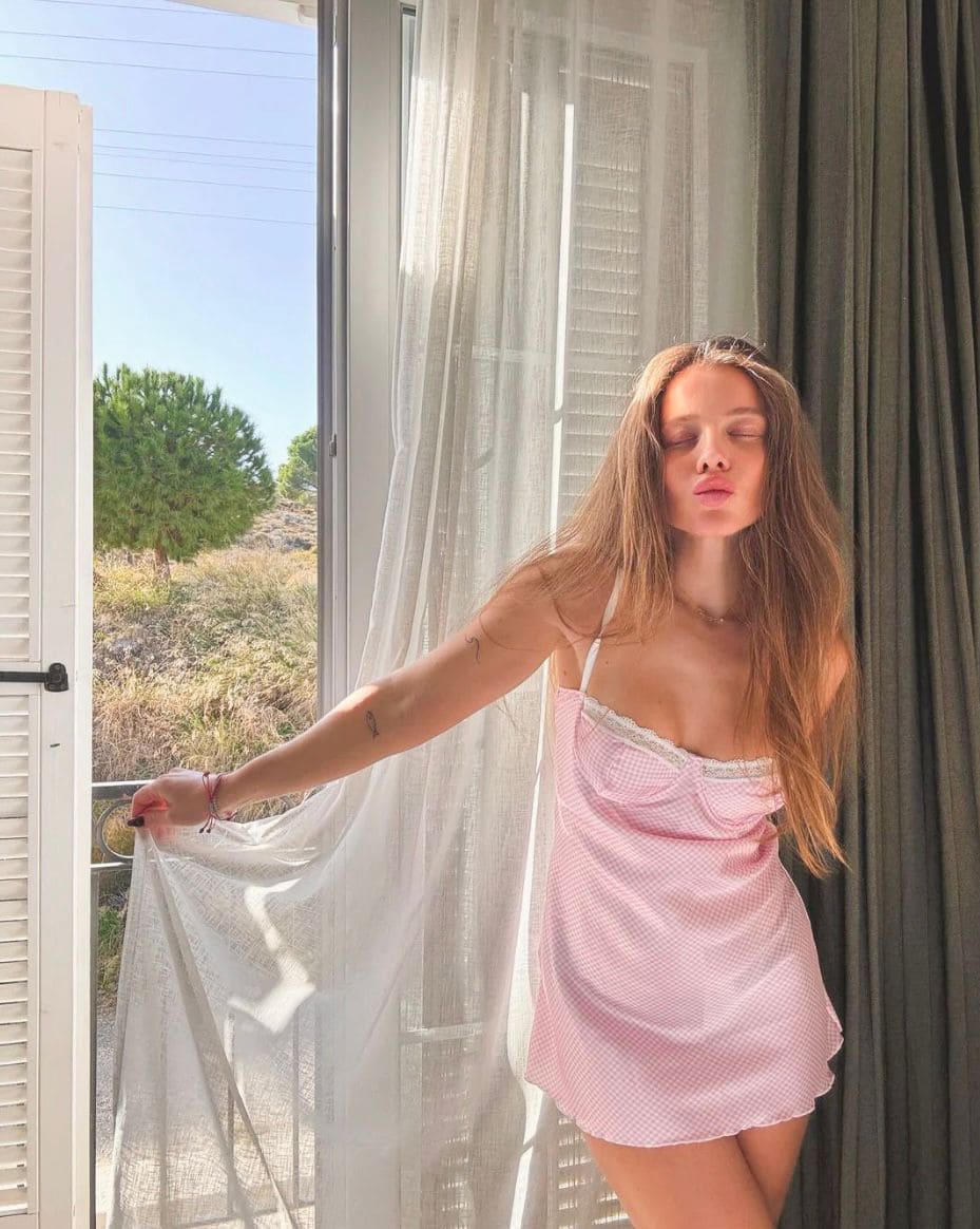 Saten kumaştan üretilmiş olan bu gecelik, teninize yumuşacık dokunuşlar sağlarken rahat bir gece geçirmenizi sağlar. Pötikare deseni ise geceliğe şık bir görünüm kazandırır.